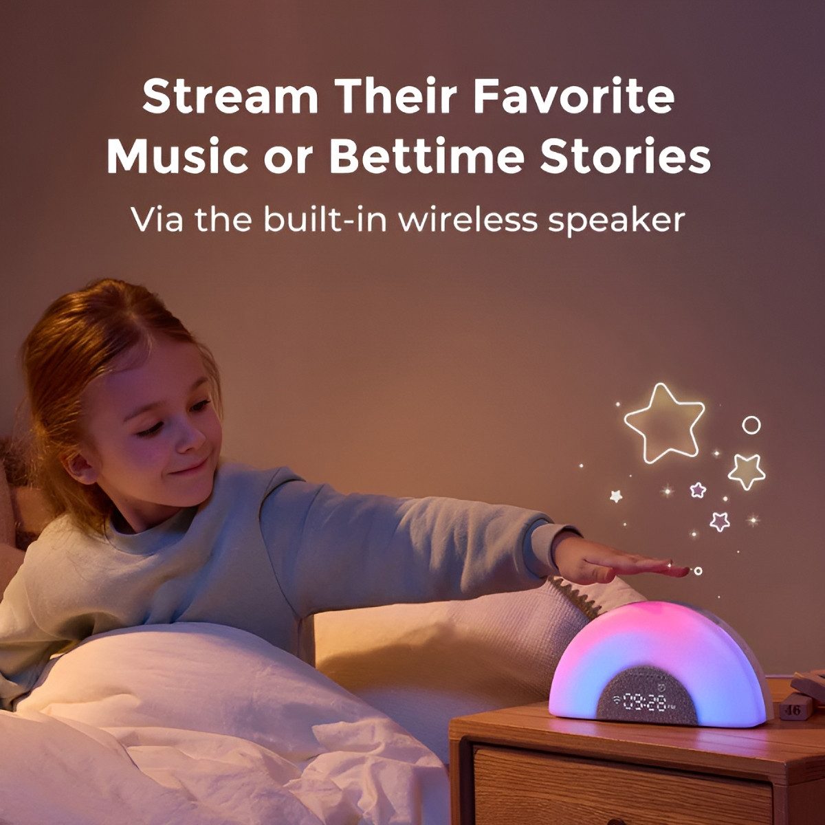 - Beruhigende Weißrausch-, Natur- und Regenbogenklänge unterstützen sowohl beim Einschlafen als auch beim Abschalten nach einem anstrengenden Tag.