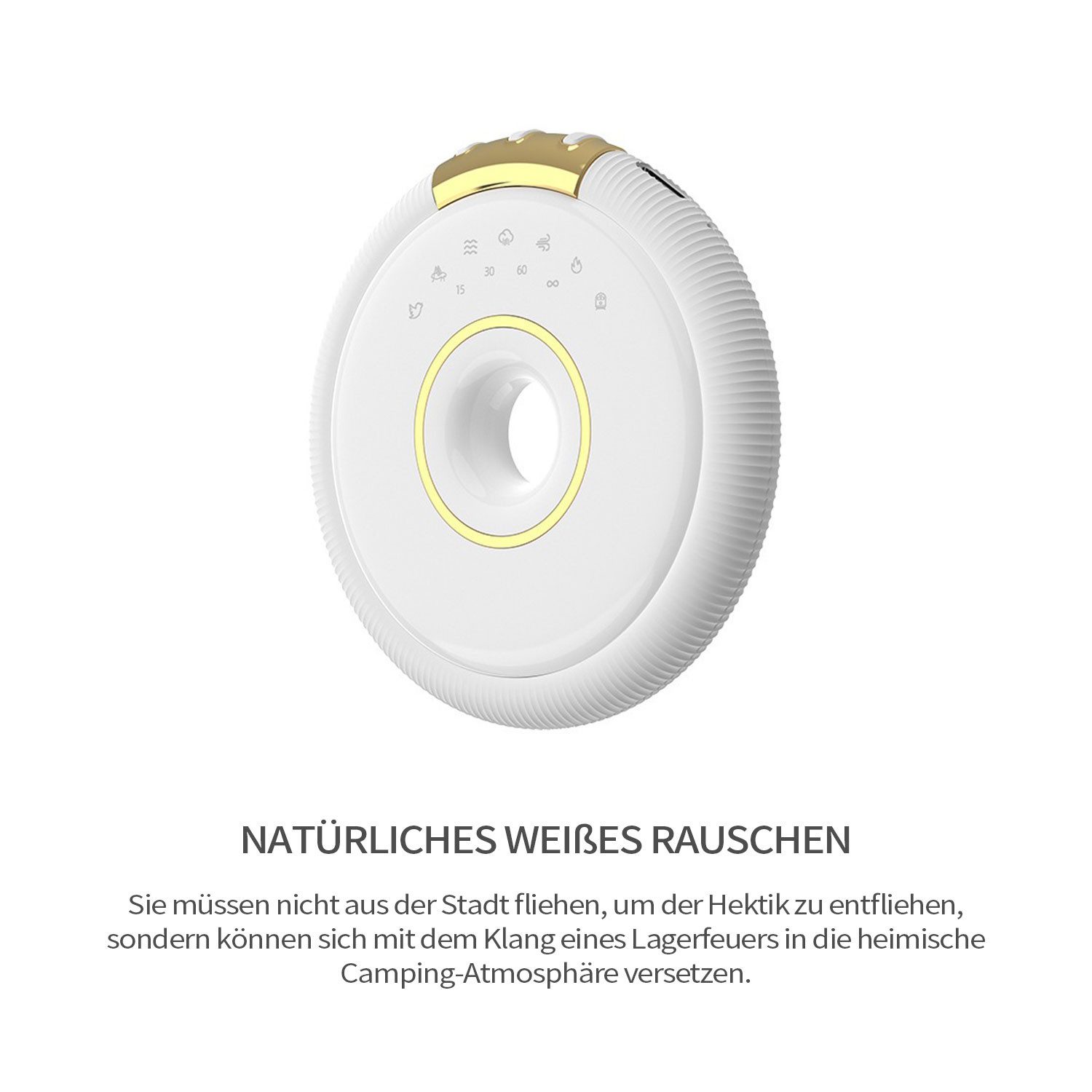 - Experimentieren Sie mit verschiedenen White Noise Klängen, um die für Sie entspannendste Geräuschkulisse zu finden.