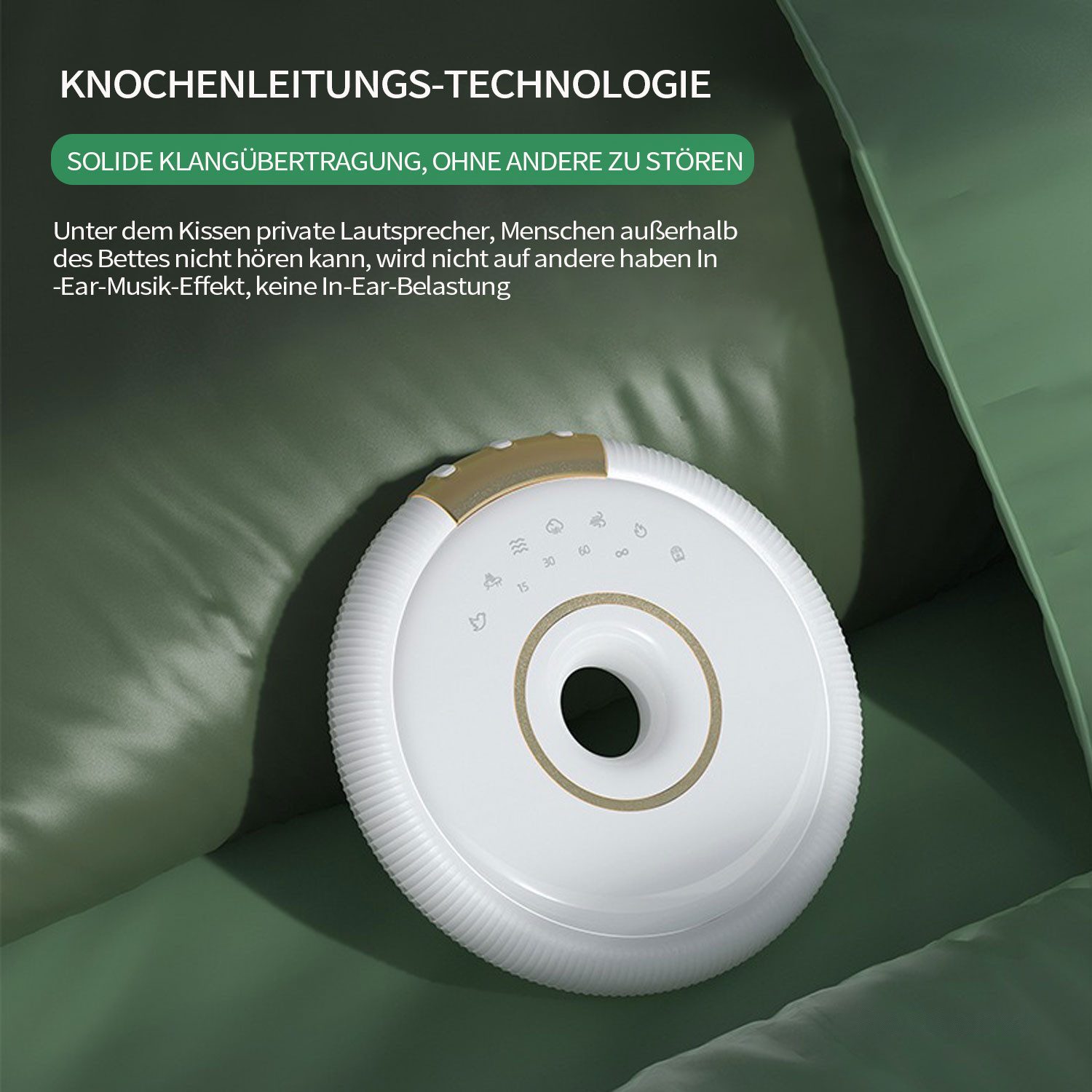 - Die Klänge kommen direkt aus dem Kissen und unterstützen Einschlaf- und Durchschlafprozesse, während Ihre Umgebung ungestört bleibt.